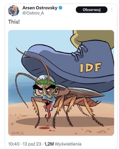 Tweet z memem Arsena Ostrovsky jest z dn. 13.10.23.Poniżej wpis z wczoraj.