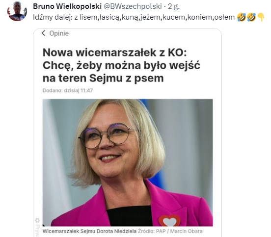 Niestety, pan Bosak idzie drogą Andruszkiewicza, za 4 lata zniknie, chyba ze kariera w PiS się zamarzy. Po co komu jakiś kolejny pajac z kolejną partyjką pieprz…. w kółko o demokracji. Mają już swoich. Pan Mentzen tez się już chyba przejadł ze swoimi niskimi podatkami i chyba to piwo nie najlepiej na niego wpływa. Za to pan Braun ma czystą kartę i nie sadze żeby sie zeszmacił. Tez jestem ciekawy co on tam pocznie.