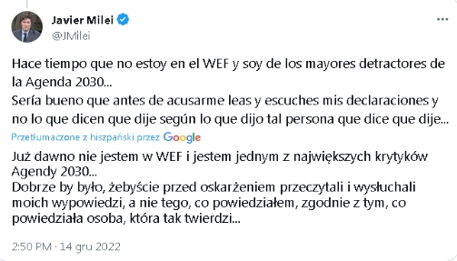 każde uderzenie w lewactwo (a dosłownie w “g****ane lewactwo”, jak sam Milei określa w wywiadach)