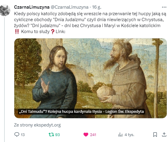 Mianowaniec Grzegorz Ryś, czyli ten kogo mianowano z modernistycznego klucza do godności kardynała, zapowiedział kolejny zbliżający się skandal w Kościele katolickim którym są cykliczne obchody Dnia Judaizmu czyli dnia niewierzących w Chrystusa, żydów.