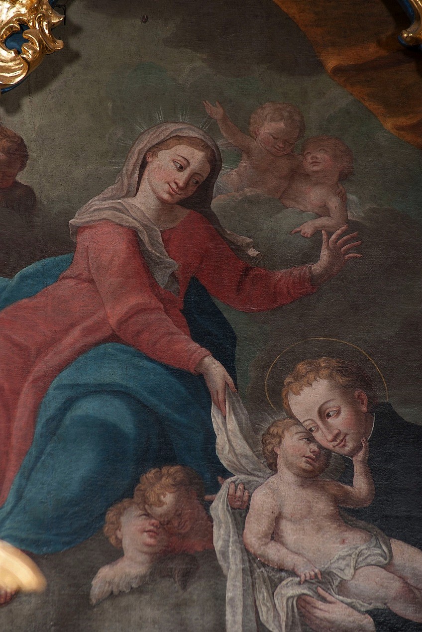 Matka Boża i św. Stanisław Kostka z Dzieciątkiem – autor nieznany. Zasuwa obrazu w ołtarzu głównym św. Piotra i św. Pawła, Bodzanów, woj. małopolskie