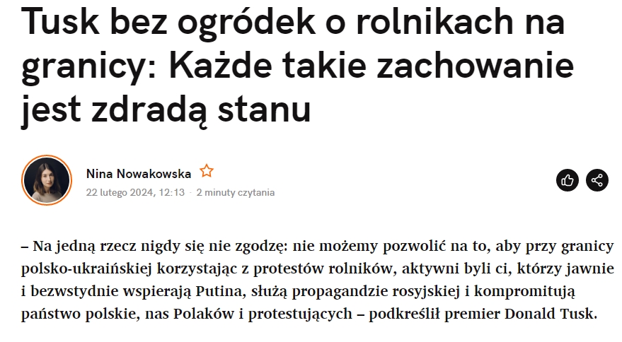 Widać wyraźnie, że „Na Temat” pisze nie na temat, bo nawet Tusk w tej wypowiedzi wyraźnie oddzielił rolników od tych, którzy