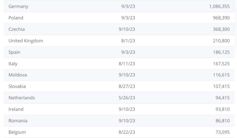 Oto zestawienie ukraińskich uchodźców według krajów UE: