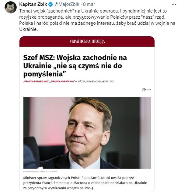 “Mąż amerykańskiej żydówki i ojciec amerykańskiego żołnierza kieruje polskim ministerstwem spraw zagranicznych. Ten kraj to mem. Zakładam, że jakby był mężem Białorusinki i synem rosyjskiego żołnierza też by było wszystko w porządku?W polityce nie ma przyjaźni. Są tylko interesy” /Klaudia Kotusiewicz/TT