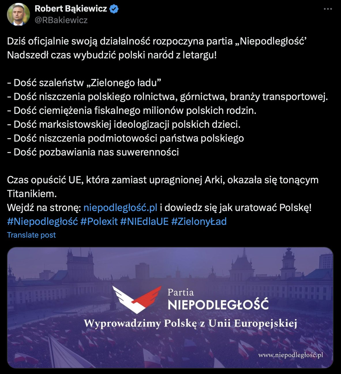 Jej postulaty powinny mi się bardzo podobać, bo przecież sam o #Polexit oraz niepodległość i niezależność dla Polski walczę od lat, ale… mam z tym projektem jeden problem.