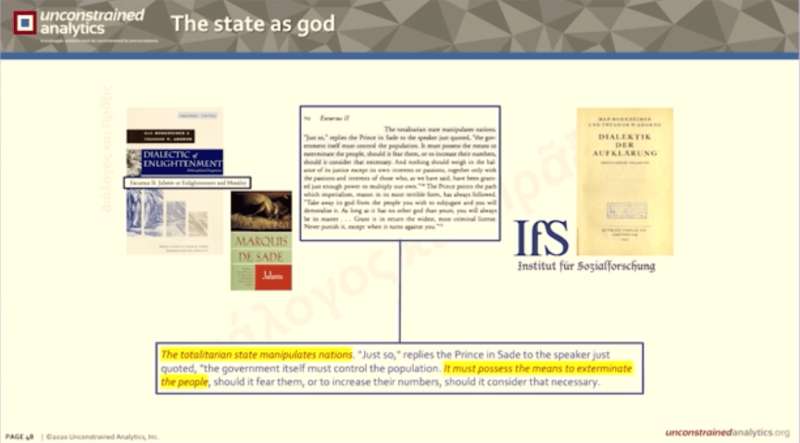 «…w dalszej części pokazuje, że celem lewicy jest stworzenie państw totalitarnych, które mają wolę i środki, aby w pełni kontrolować ludzi, łącznie z ich eksterminacją, „jeśli uznają to za konieczne”.»
