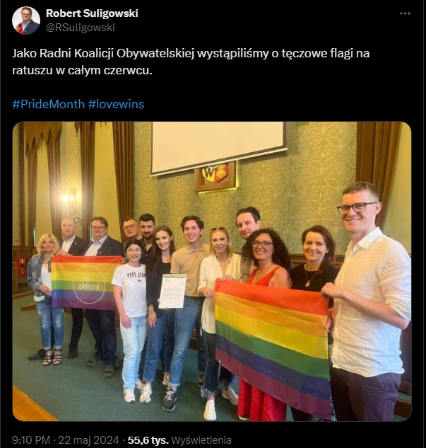 “Zdjęcie krzyży w warszawskim Ratuszu to wielki moralny przełom, zapowiadający wyzwolenie Polski od poddaństwa ciemnej i zdeprawowanej dyktaturze Watykanu. Niepodległa Polska jest już blisko. Brawo i dziękuję Panie Prezydencie Trzaskowski!”