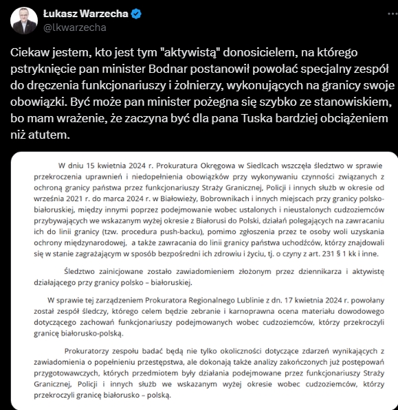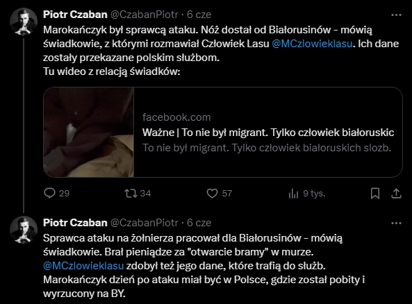 Tymczasem, jak można było się spodziewać, pojawiła się już narracja bazująca na zeznaniu przygarniętego (wpuszczonego “drogą specjalną”) nachodźcy: