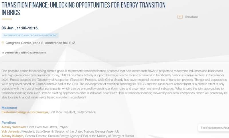 Inny panel omówi „finansowanie transformacji” i inne zrównoważone działania, które ponad wszelką wątpliwość dowodzą, że „kraje BRICS aktywnie wspierają ruch na rzecz redukcji emisji w sektorach tradycyjnie wysokoemisyjnych”: