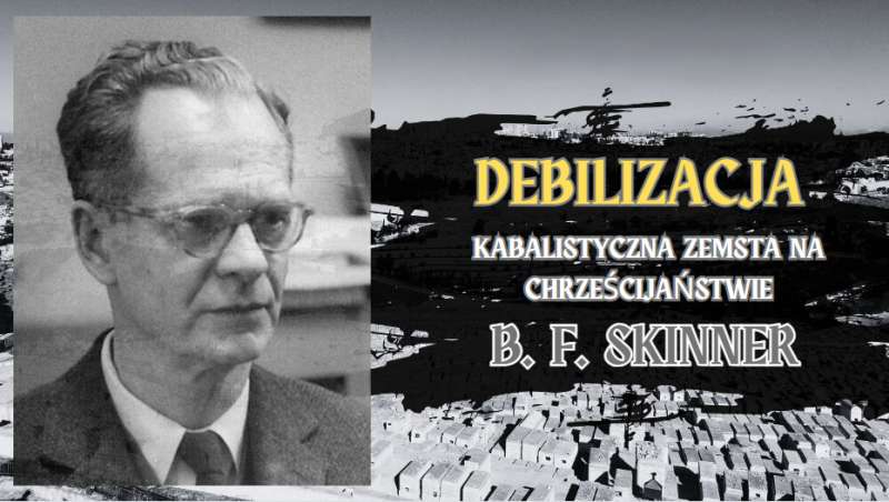 Na zdjęciu Burrhus Frederic Skinner, wybitny psycholog – behawiorysta, twórca systemu zarządzania społecznego, nazwanego przezeń „technologią zachowania”, wdrażanego obecnie w świecie białego człowieka. LINK