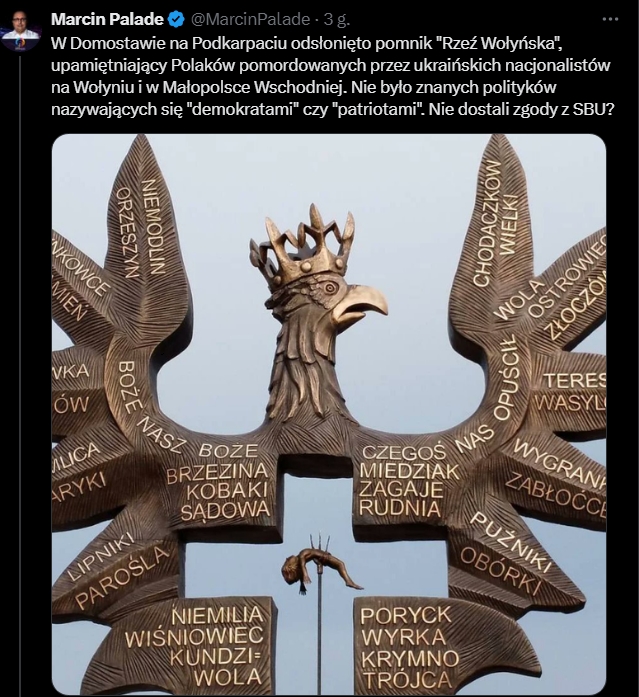 “To jest pomnik nienawiści” – przed chwilą w Polsacie, Mirosław Skórka, szef Związku Ukraińców w Polsce, o pomniku Rzezi Wołyńskiej, odsłoniętym dziś w Domostawie Bezczelni są, bezczelni…