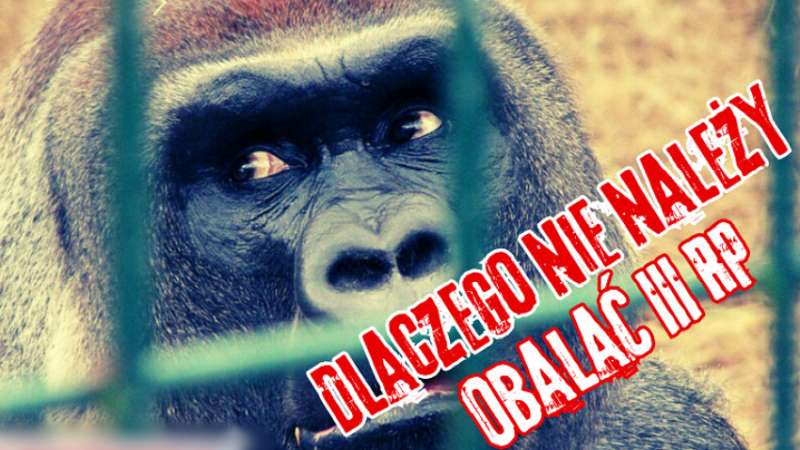 W obecnej chwili dla części zewnętrznych organizatorów, zakłócających od dziesięcioleci działania naszego państwa bardzo byłoby na rękę, aby wybuchły w Polsce takie zamieszki społeczne, z którymi siły porządkowe nie mogłyby sobie dać rady. Wówczas rząd skorzystałby zapewne ze swoich plecaków ewakuacyjnych, a Polacy zostaliby bez żadnej władzy. Przypomina to walenie prętem po klatce, w której siedzi goryl, aby go pobudzić do rozwalenia klatki. Wówczas można będzie goryla spętać w łańcuchy. Jesteśmy właśnie jak ten goryl. Władza jest taka, jak opisano wyżej, ale jednocześnie zapewnia funkcjonowanie administracji, dzięki której zaspokajamy swoje potrzeby. Wszystko to dzieje się w sposób nieefektywny i wadliwy, ale bez tego znaleźlibyśmy się sami jako rozproszone grupy rozbieganych, bezradnych ludzików, łatwych do pożarcia przez Marsjan z Wojny Światów Wellsa. Na chwilę obecną nie mamy czym zastąpić III RP i jej władzy. Nie ma takiej siły politycznej ani społecznej, która mogłaby zorganizować chociaż część ludzi i odtworzyć aparat decyzyjny. Nie mamy też gotowej koncepcji narodu, państwa i polityki, którą moglibyśmy zaproponować narodowi, a którą mógłby zaakceptować. Obalać teraz państwo byłoby takim samym samobójstwem, jak wywołanie Powstania Listopadowego, Krakowskiego, Styczniowego i Warszawskiego.