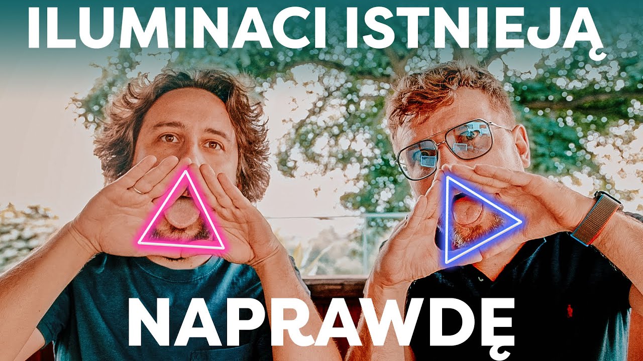 Iluminaci polscy – dwaj celebryci pokazujący znak iluminatów (trójkąt, piramida) oraz satanistyczny (język)