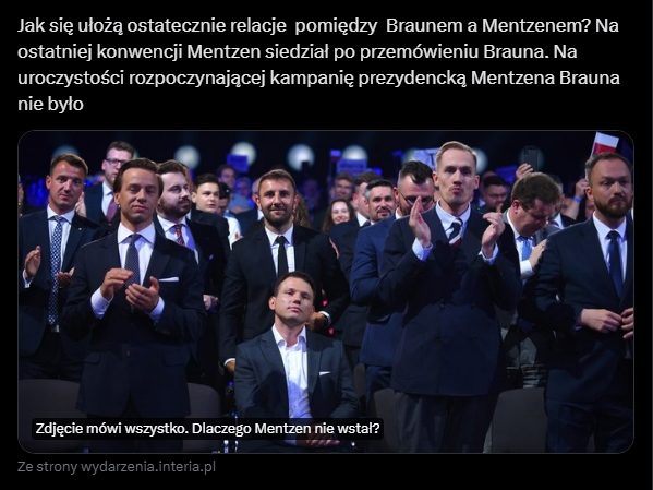 Braun, znając jego dotychczasowe deklaracje, odpowiedziałby zapewne „Ja i Mentzen”. A Mentzen? Obawiam się, że w dalszej perspektywie Mentzen nie widzi Brauna jako lidera Konfederacji.