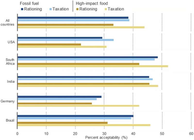 Jeśli przyjrzeć się wykresowi wyników badania, widać, że ani jedno z badanych działań nie uzyskało ponad 50% poparcia w żadnym kraju: