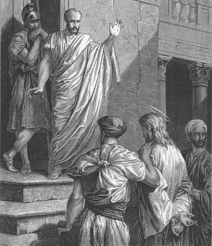 Piłat powiedział do Jezusa: „Czy Ty jesteś Królem żydowskim?” Jezus odpowiedział: „Czy to mówisz od siebie, czy też inni powiedzieli ci o Mnie?” Piłat odparł: „Czy ja jestem Żydem? Naród Twój i arcykapłani wydali mi Ciebie. Co uczyniłeś?” Odpowiedział Jezus: „Królestwo moje nie jest z tego świata. Gdyby królestwo moje było z tego świata, słudzy moi biliby się, abym nie został wydany Żydom. Teraz zaś królestwo moje nie jest stąd”. Piłat zatem powiedział do Niego: „A więc jesteś królem?” Odpowiedział Jezus: „Tak, jestem królem. Ja się na to narodziłem i na to przyszedłem na świat, aby dać świadectwo prawdzie. Każdy, kto jest z prawdy, słucha mojego głosu”.