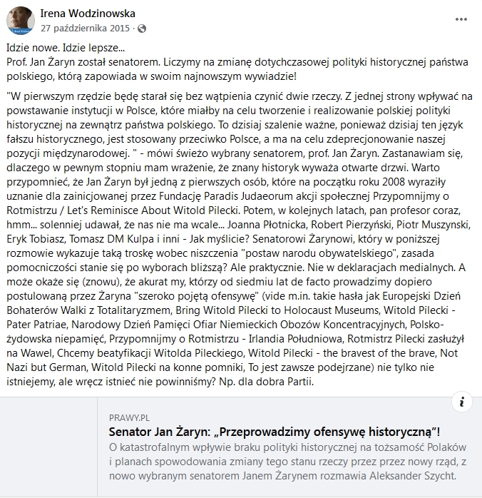 Deklaracje o ofensywie polityki historycznej, deklaracje związane z osobą Rotmistrza Pileckiego były składane wielokrotnie. Tymczasem jest coraz gorzej, co akurat nie dziwi skoro w tzw. polityce od dekad jest ten sam sort starych degeneratów, a także nowy narybek antypolskich hunwejbinów.