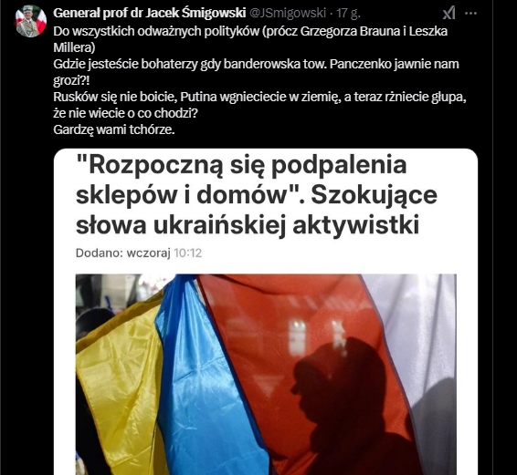 Wojsko Polskie, jeżeli ma jakąś wojnę do stoczenia, to jest to wojna z banderowską resztówką po zbankrutowanym, upadłym państwie ukraińskim. To jest realna perspektywa.