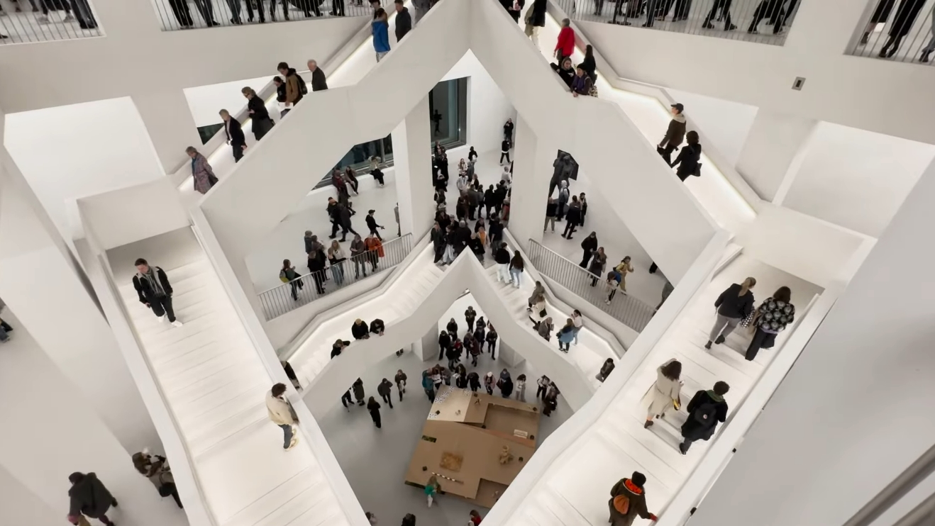 Wizyta w muzeum, tuż po przekroczeniu progu, przenosi natychmiast osoby zwiedzające do ogromnej przestrzeni – pustki intelektualnej i artystycznej stanowiącej naturalną głębię w wyobraźni lub nienaturalny ubytek w rozumie „nowoczesnych artystów”. Ale… jak się okazuje, po jakimś czasie, to tylko „pierwsze wrażenie”. Trzewia nicości są pełne. Ich perystaltyka jest wprost proporcjonalna do liczby wchodzących i schodzących po schodach – ofiar.