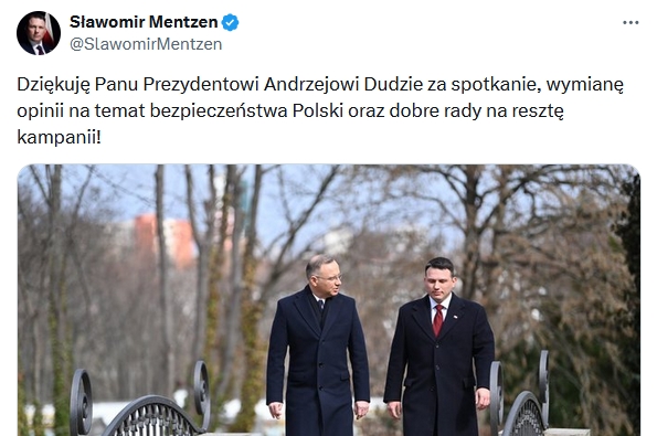 Mentzen spotkał się z prezydentem Dudą. „Najważniejszy temat dla Polaków, prezydent jest zawsze gotowy do rozmowy”, 18.03.2025