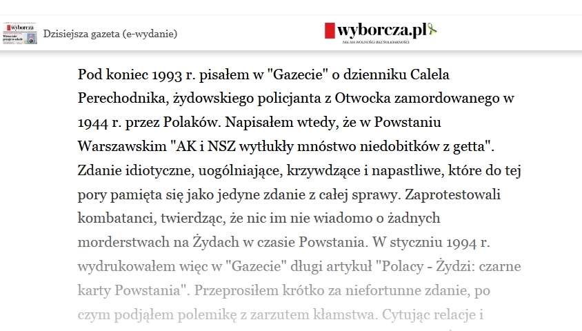Do części “Dzieli na pamięć” dodałem try akapity + cytat z GW, uzupełniając historyczny kontekst. Może Pan dokonać aktualizacji na swojej stronie, ale pierwotna szczupła wersja też “może być” :-)