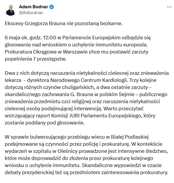 Bardziej stonowane są osoby publiczne na synekurach, które grożą „tylko” więzieniem. Dominika Wielowiejska zaczerpnęła wiedzę z archiwum Nienawidzących Razem, którzy specjalizują się w stawianiu diagnoz Polakom. Adam Bodnar z kolei nawiązuje do zamienienia flagi ukraińskiej na polską na fasadzie urzędu w Białej Podlaskiej.