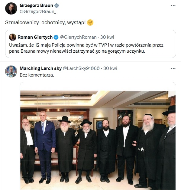 Mamy do czynienia z osobnikami o mentalności bolszewików i folksdojczów, którzy – tak jak już bywało w historii – nie cofną się przed niczym i to właśnie zapowiadają. Kampanię nienawiści i zwalczania polskości, a konkretnie istotny nurt tej kampanii popierał Jarosław Kaczyński twierdząc, że prawica narodowa jest antysemicka i antyunijna.