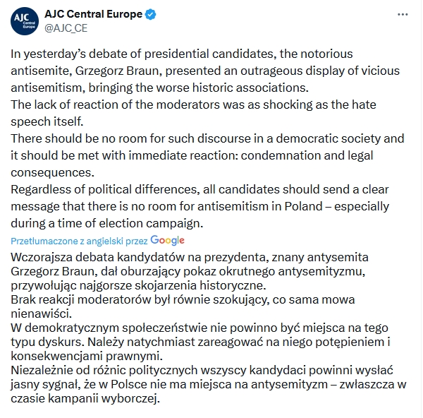 W Polsce nie ma miejsca na antysemityzm, jest zajęte przez bezczelny antypolonizm.