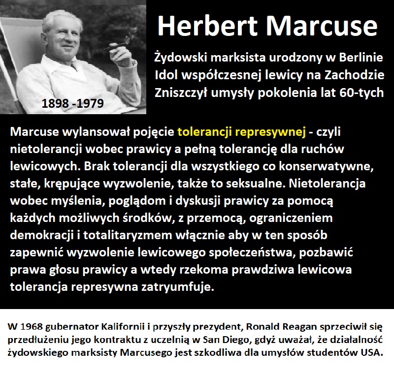 Najnowsza wersja historii uczy nas, że niektórzy żydowscy komuniści byli dobrzy i stali się spiżowymi postaciami neokomunistycznej lewicy, zostawiając spuściznę publicystyczną po sobie w postaci 11 przykazania. Jeszcze inni żydowscy komuniści – neomarksiści, zostawili po sobie “tolerancję represywną” wprowadzoną niedawno do polskich przepisów w formie nowelizacji o możliwości nienawiści i prześladowań skierowanych w stronę prawicy (nazwana o “mowie nienawiści”) kogo do kogo?