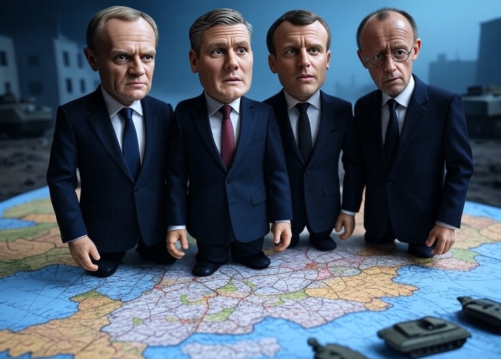 Z Rzeszowa do Kijowa trójka panów z Niemiec, W. Brytanii i Francji, określana jako “koalicja chętnych” pojechała razem, a Tusk osobno jako nie przynoszący splendoru, bagaż dodatkowy. Występujący w roli płatnika – trzymającego kasę polskich frajerów został umieszczony przez Ukraińców w drugim wagonie.
