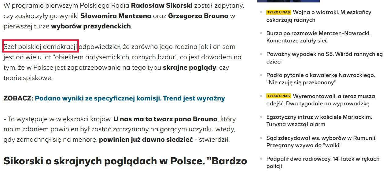 Sikorski skomentował incydent z Braunem. “Powinien już dawno siedzieć”