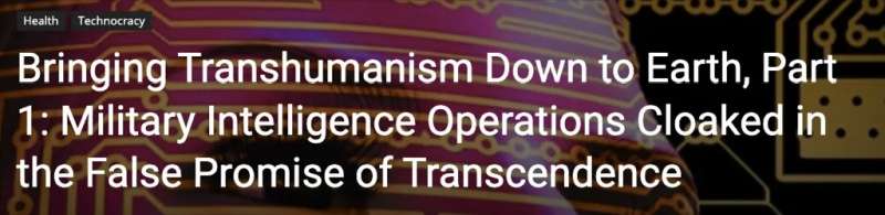 W swojej czteroczęściowej serii Lissa Johnson, Daniel Broudy i David A. Hughes zauważają, że badania transhumanistyczne rozkwitają w wojsku i w NASA, gdzie wydatki na tworzenie udoskonaleń technologicznych mogą być uzasadnione ze względu na ekstremalne warunki, z jakimi spotykają się ludzie na tych stanowiskach.