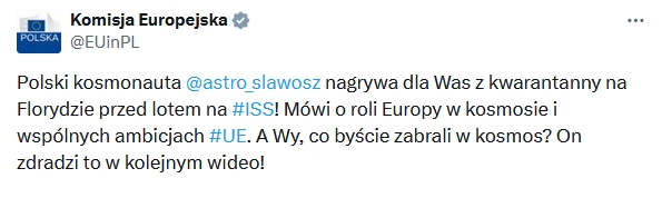 Uznański jeszcze nie Wiśniewski został przez ESA wytypowany do lotu kosmicznego (28 czerwca 2023) jeszcze przed ślubem (2025), a nawet znajomością z posłanką KO (jesien 2023). Też nie liczyłbym na jakieś specjalne zyski ani korzyści z tego lotu (choć eksperymenty są zaproponowane i zaprojektowane przez polskie firmy więc może jakiś sens dla nich mogą mieć), ale jednak trzymajmy się faktów …