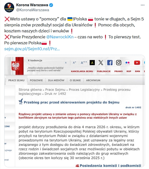 Poważnie mówiąc, jest inaczej. Już za chwilę prezydent Nawrocki będzie mieć okazję zawetować ustawę okradającą Polaków- przedłużającą wydatki na Ukraińców przebywających w Polsce. Zobaczymy jak postąpi.