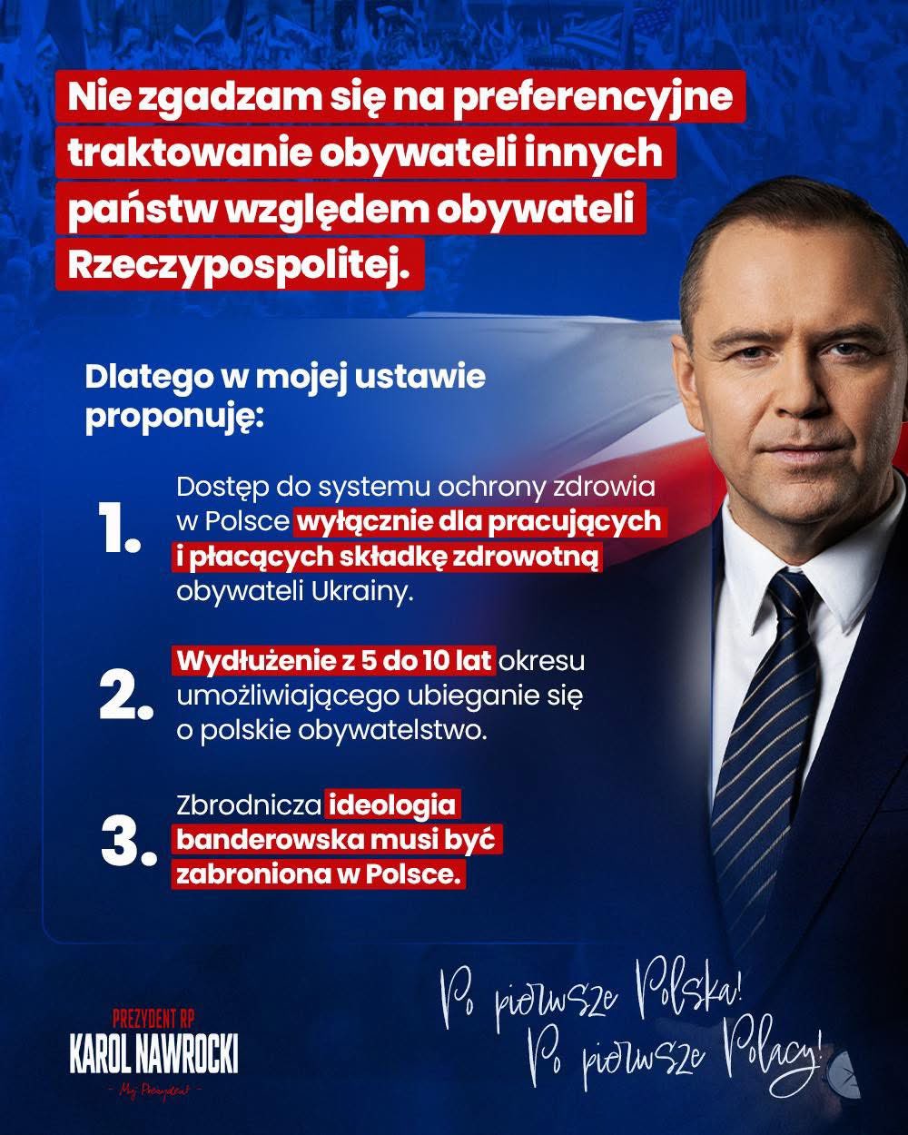 Dostęp do naszych systemów socjalnych oraz ochrony zdrowia wyłącznie dla pracujących i płacących składki w Polsce. Wydłużenie okresu umożliwiającego uzyskanie obywatelstwa oraz zakaz banderyzmu. To niektóre założenia ustawy Prezydenta Karola Nawrockiego. /Nawrocki 2025/X