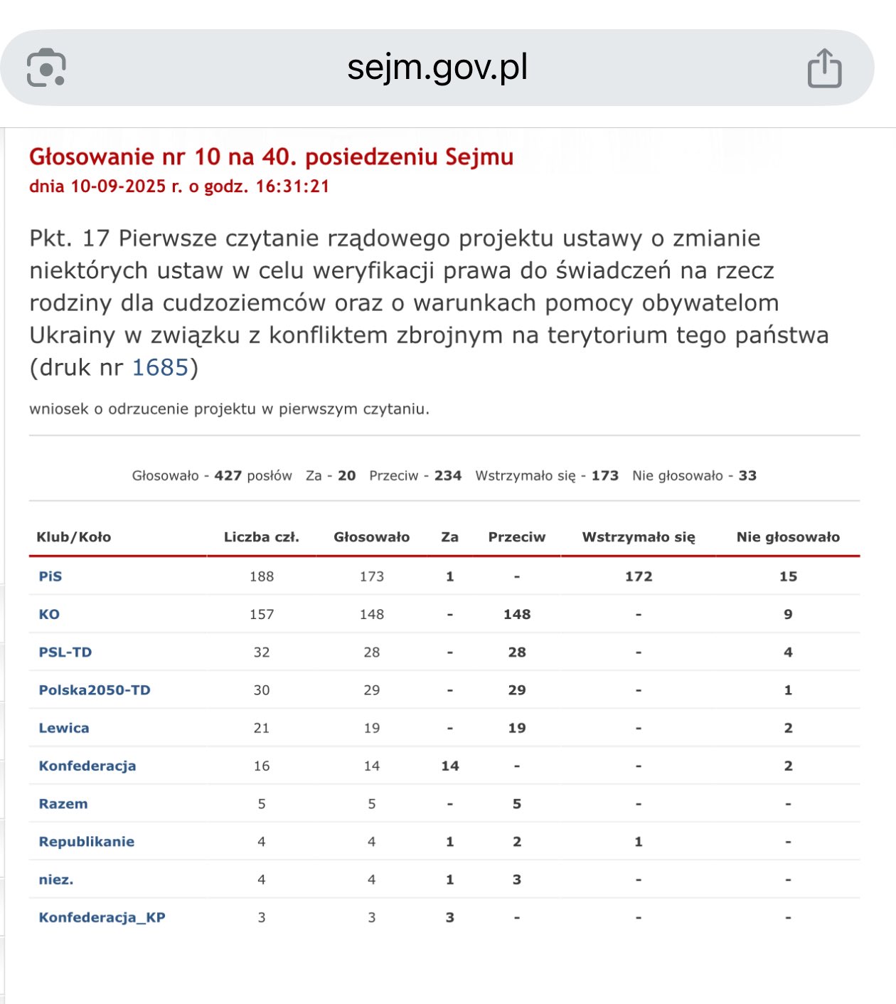 Właśnie cała koalicja rządowa po raz kolejny przepchnęła ustawę o tzw. pomocy dla Ukrainy. Jako jedni z nielicznych w całości zagłosowaliśmy przeciw. Apelujemy do prezydenta o jej zawetowanie. Dość okradania Polaków dla utrzymywania niewdzięcznego wobec nas państwa. /Konrad Berkowicz/