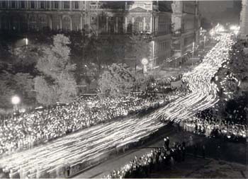 Ok. 1950: jedna z różańcowych procesji światła z udziałem setek tysięcy wiernych, na wiedeńskim Ringu