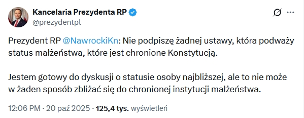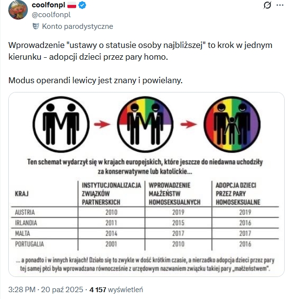 Zaskakującym jest to, że po tylu latach niszczenia przez „wolne diabelstwo” (inne nazwy to wolnomularstwo albo masoneria), niszczenia przez nich kultury wraz z instytucją małżeństwa i rodziny, są ludzie, którzy wciąż się nabierają – w ostatniej odsłonie wciąż tej samej hucpy – na „status osoby najbliższej”.