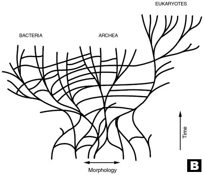 Ewolucjoniści próbowali zgrupować całe życie w postaci jednego filogenetycznego, czyli rodzinnego drzewa. Głównym przewidywaniem teorii ewolucyjnej było to, że istnieje pojedynczy wzorzec podobieństwa, wiążący wszystkie organizmy. „Korzeniem” z którego miało się wywodzić życie miała być pierwotna, żyjąca 3,5 mld lat temu, komórka prokariotyczna (bezjądrzasta). Niestety cały czas istniał i istnieje problem luk między postulowanymi „krewnymi”.
