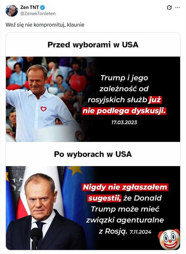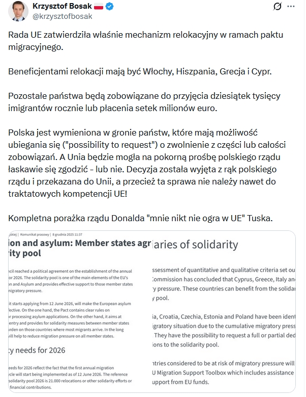 Sukcesy Tuska próbuje obrzydzać, pod wpływem rosyjskiej propagandy, Krzysztof Bosak… w komentarzu na X z 8 grudnia, z godziny 11.58.