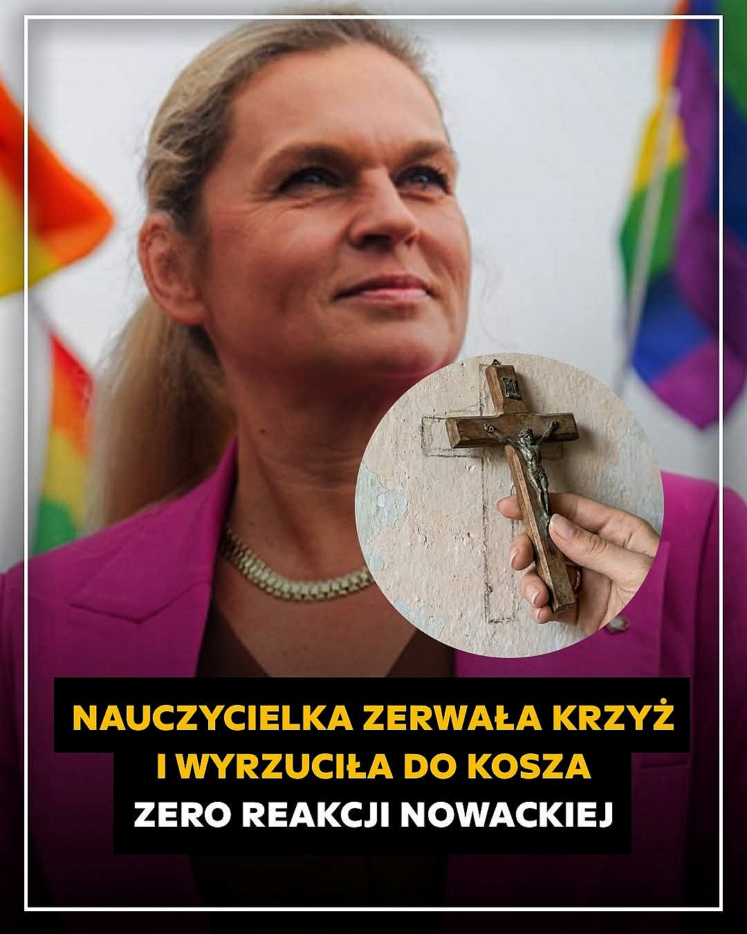 Sprawa profanacji Krzyża , której dokonano przed Świętami w Szkole Podstawowej w kaszubskiej wsi Kielno, nabiera na szczęście coraz większego rozgłosu. Odnotujmy więc i my, jako portal katolicko-narodowy, ten dokonany w katolickiej Polsce jeszcze jeden akt zniewagi Chrystusa, w postaci wrzucenia do kosza przez nauczycielkę, podobno języka angielskiego, najświętszego symbolu naszej Wiary. Według wpisu na Facebooku poseł Marii Kurowskiej, nauczycielka kazała uczniom zerwać krzyż i wrzucić do kosza. To spotkało się z ich sprzeciwem, a więc sama to zrobiła. Jest też naoczny dorosły świadek tego wydarzenia, który potwierdza wersję podawaną przez dzieci. Uczniowie powiadomili o tym rodziców, którzy rozesłali pisma protestujące m.in. do dyrekcji szkoły, do parafii, do wójta. Dyrektorka szkoły umyła ręce – jako “osoba bezstronna” która “nie powinna angażować się po stronie niczyich racji”. Więc po co jest dyrektorką? pedagogiem? – chce się zapytać – skoro nie zamierza odróżniać uczynków dobrych od złych u swoich podopiecznych i personelu, którym zarządza? Zwłaszcza, że sprawa dotyczy nie tylko zagadnień moralności i religii, ale też – trzymając się sposobu rozumowania dyrektorki – świeckich paragrafów regulujących życie społeczne. Art. 196 k.k. określa jako czyn przestępczy obrazę uczuć religijnych innych osób “poprzez publiczne znieważenie przedmiotu czci religijnej lub miejsca przeznaczonego do publicznego wykonywania obrzędów religijnych”.