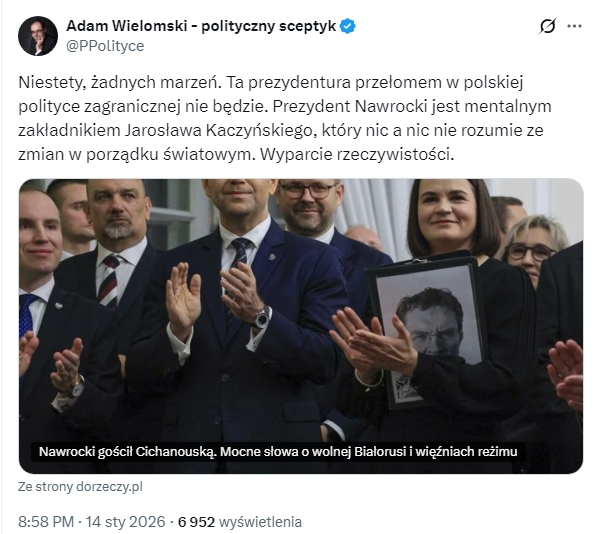 Notę wystawił Adam Wielomski /po spotkaniu z intelektualistką Cichanouską/