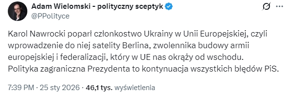 – oznajmił Nawrocki pytany o potencjalne przystąpienie Ukrainy do Unii.