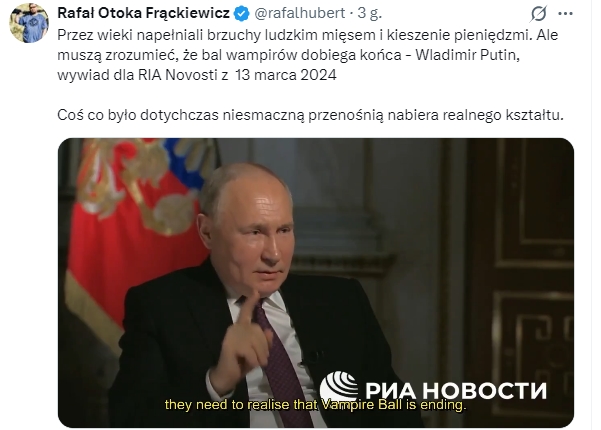 Jak zauważyłem na X, niektórzy próbują przekierować uwagę publiczności w stronę Rosji i Putina. Trochę niefortunnie, bo redaktor Otoka – Frąckiewicz czuwa z odgrzaną porcją ruskich pierogów: