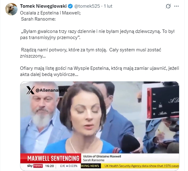 “Miliony nowych dokumentów dotyczących przestępcy seksualnego Jeffreya Epsteina zostały opublikowane przez amerykański Departament Sprawiedliwości — trzy miliony stron, 180 tys. zdjęć oraz 2 tys. nagrań wideo”.