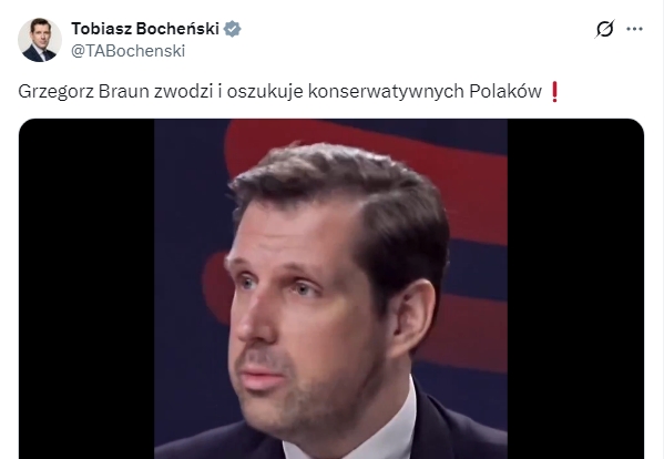 (Grzegorz Braun) ubiera się w strój polityka, który jest konserwatywny, katolicki, patriotyczny, kręci filmy o Gierzwałdzie, a jednocześnie chce sojuszu z odwiecznym wrogiem Polski i katolicyzmu…/X/