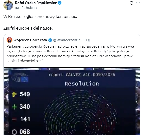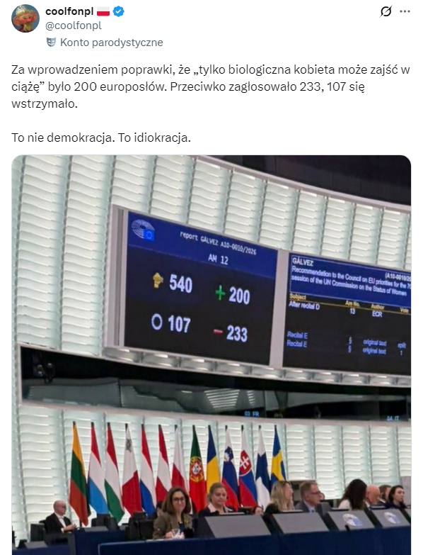 Parlament Posteuropejski z dumą oraz bez krzty uprzedzenia przywrócił prawo do kobiecości wielu mężczyznom… nie – nie można tak mówić – powinno być: wielu kobietom z męskim przyrodzeniem.