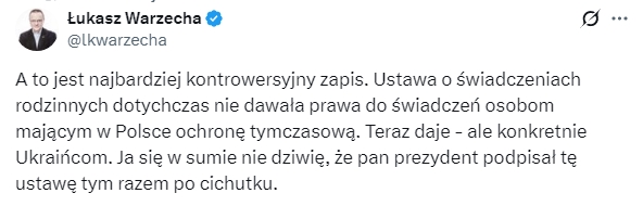 Jednym z wielu narzędzi jakie daje Wojna na Ukrainie jest niszczenie demograficzne Polski poprzez osiedlanie obcych cywilizacyjnie Ukraińców oraz innych nacji z terenów wschodnich, a także towarzyszący temu nieustanny drenaż finansowy. Czy Karol Nawrocki tego nie widzi?