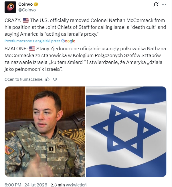 Warto by było ustalić jakie wpływy mają w Polsce, bo za pewne nie mniejsze niż w USA, ci którzy kazali usunąć członka kolegium szefów sztabów.