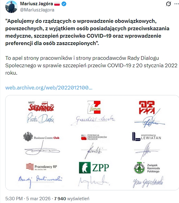 Solidarność tragiczna historia. Piękny początek, a potem rozbicie przez SB i przejęcie przez żydokomunę, a ostatnio jej resztki zblatowane z antypolskim PiS. Poniżej apel o zwiększenie dyskryminacji “niezaszczepionych” Polaków w ramach terroru sanitarnego